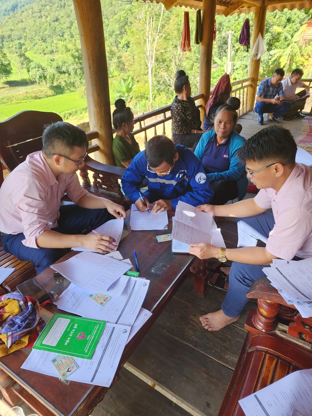Cán bộ Phòng Giao dịch NHCSXH Tuần Giáo giúp người dân thực hiện thủ tục vay vốn.